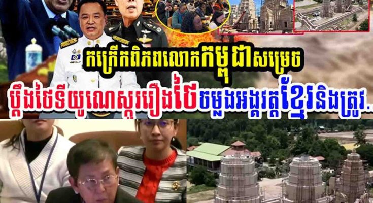 កក្រើកពិភពលោក!! កម្ពុជាសម្រេចប្តឹងថៃទៅយូនេស្កូរឿងថៃចម្លងអង្គរវត្តខ្មែរនិងត្រូវ….. December 7, 2025December 7, 2025 - by yuth - Leave a Comment កក្រើកពិភពលោក!! កម្ពុជាសម្រេចប្តឹងថៃទៅយូនេស្កូរឿងថៃចម្លងអង្គរវត្តខ្មែរនិងត្រូវ….. សូមទស្សនាវីដេអូខាងក្រោមនេះ